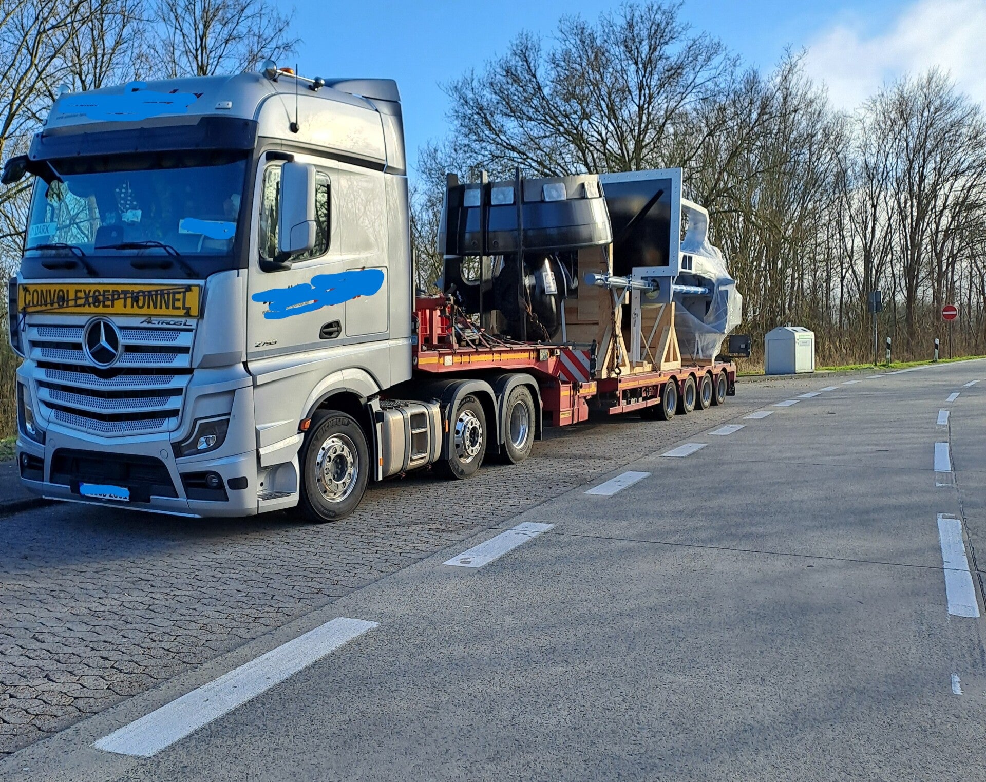 zu bauende Windenergieanlage beladen waren und über 100to Gesamtgewicht auf